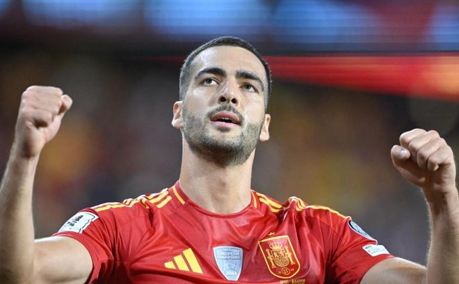 比赛开始不久,格里马尔多的射门被门将没收。随后,巴埃纳在左侧带球内切远射,门将再次把球没收。第17分钟,奥莫罗迪翁在禁区左侧的射门还是被门将化解了。紧接着,佩德里差一点进球,只可惜他的射门击中了横梁。第35分钟,西班牙终于进球了!梅里诺头球接力,把球顶进。半场结束,屡失良机的西班牙1-0领先保加利亚。